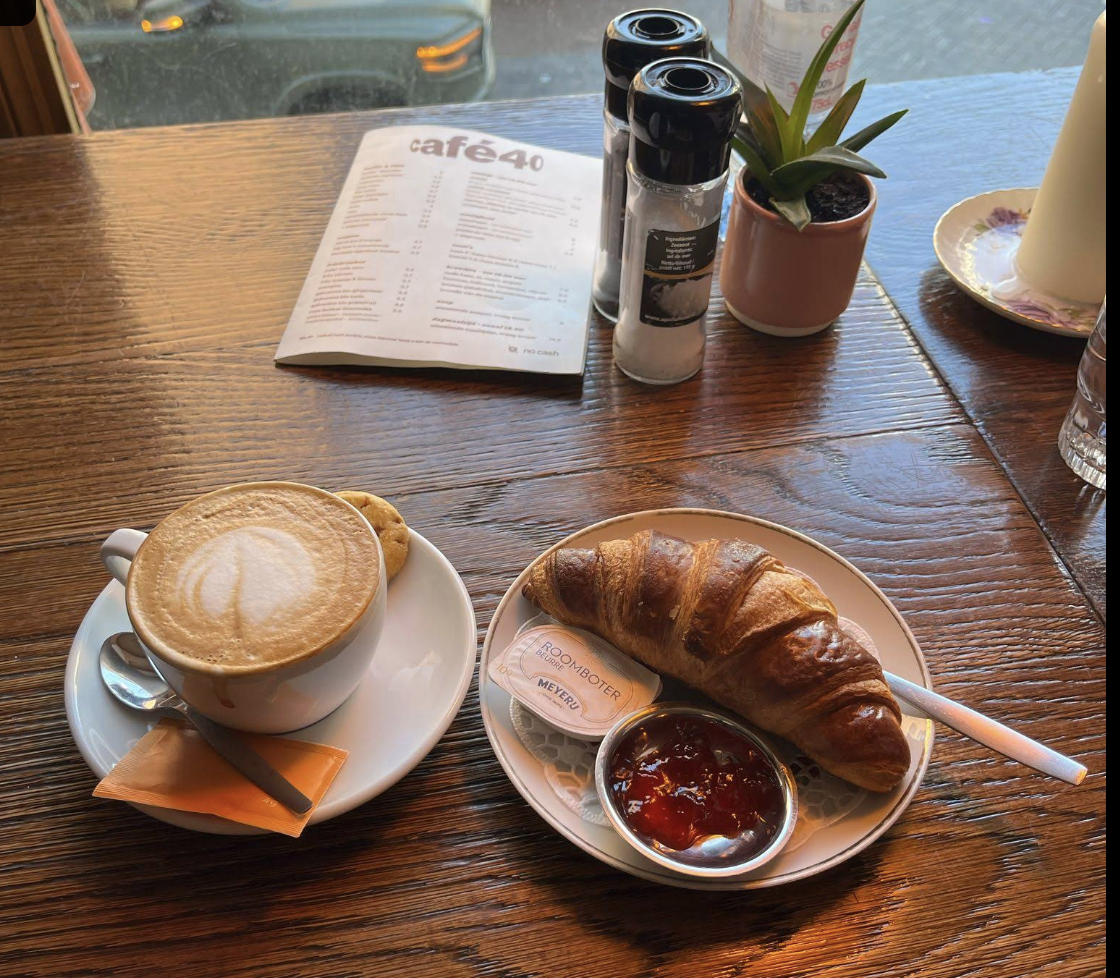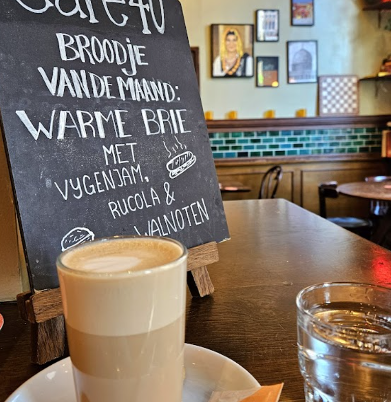 Café 40 is echt een toffe plek. Super gezellige sfeer, heel vriendelijk personeel en waarschijnlijk een van de beste koffies die ik in Amsterdam heb gehad. De cappuccino was perfect, en hun gebak? Next level — de wortelcake was onwijs goed.